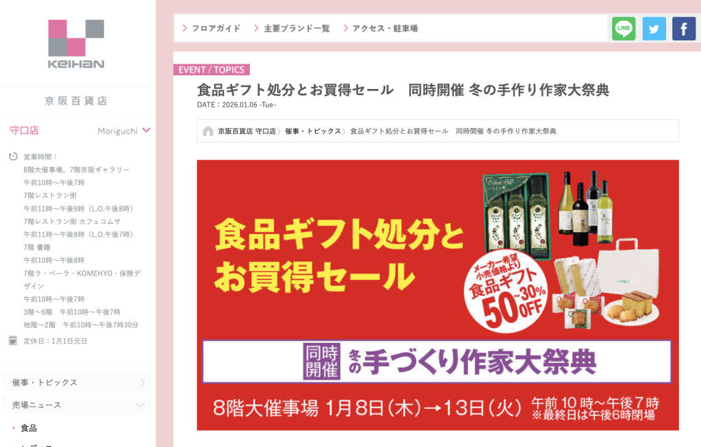 京阪百貨店 守口店で「食品ギフト処分とお買得セール」が開催されるようです。