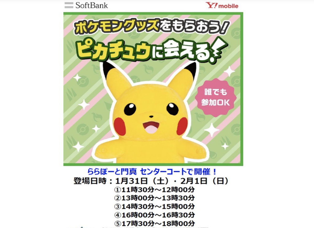 参加は無料ですし、ピカチュウに会いにららぽーと門真に行くのもいいのでは!