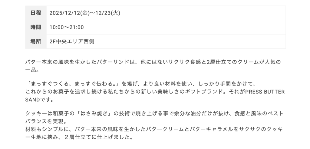 ららぽーと門真に「PRESS BUTTER SAND」の期間限定店が出店しているようです。