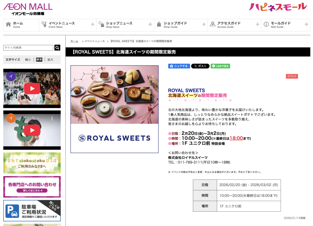 イオンモール四條畷に「ROYAL SWEETS」の期間限定店が出店するようです。