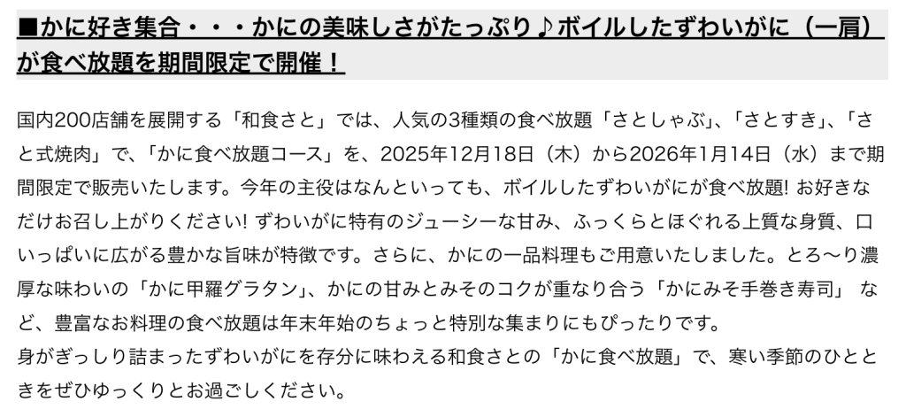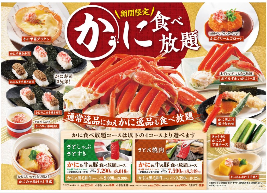 和食さとで「かに食べ放題」が始まっているようです。