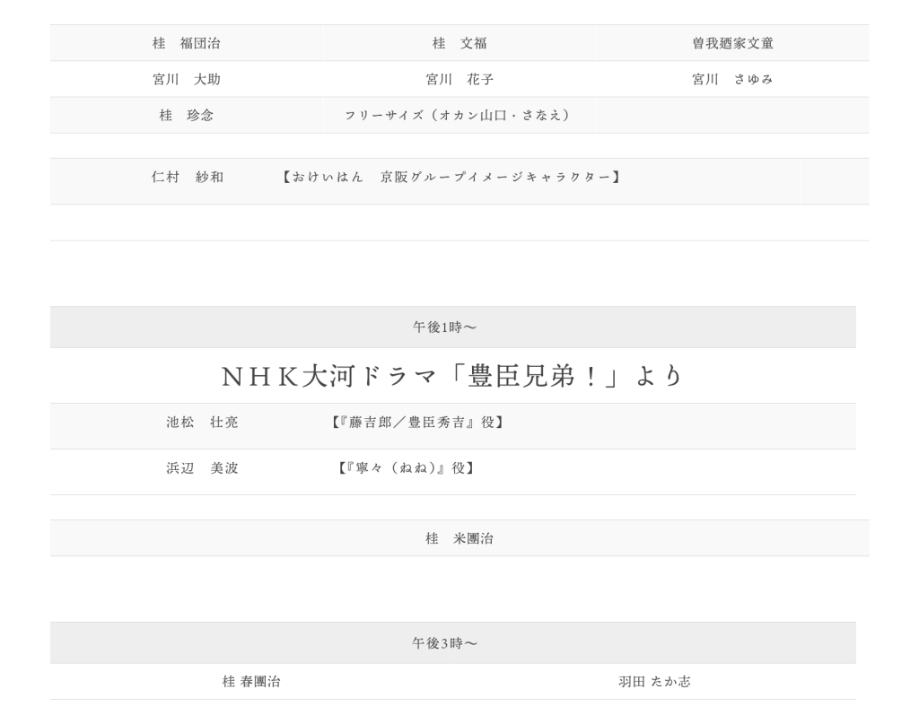 今年2026年は「ばけばけ」に出演中の髙石あかりさん・トミー・バストウさん・岡部たかしさんが来るということは以前にも記事にしています。