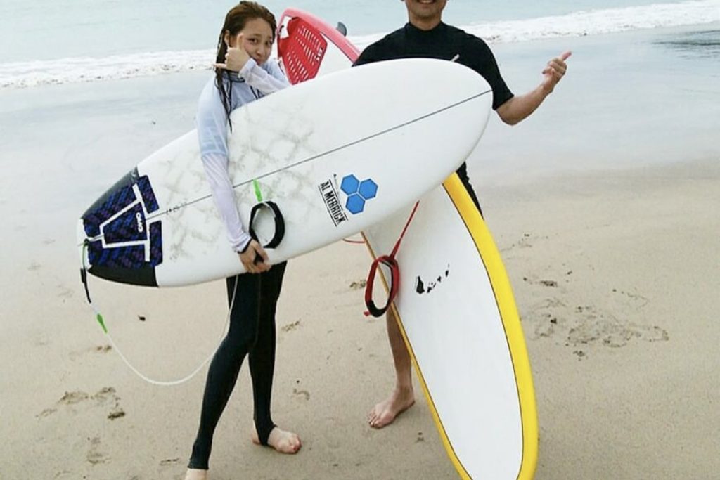 父の影響でサーフィンを趣味でしていた学生時代。バレエをしながらなので焼けすぎないようにやっていました。笑