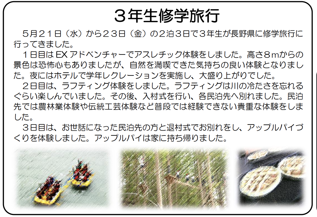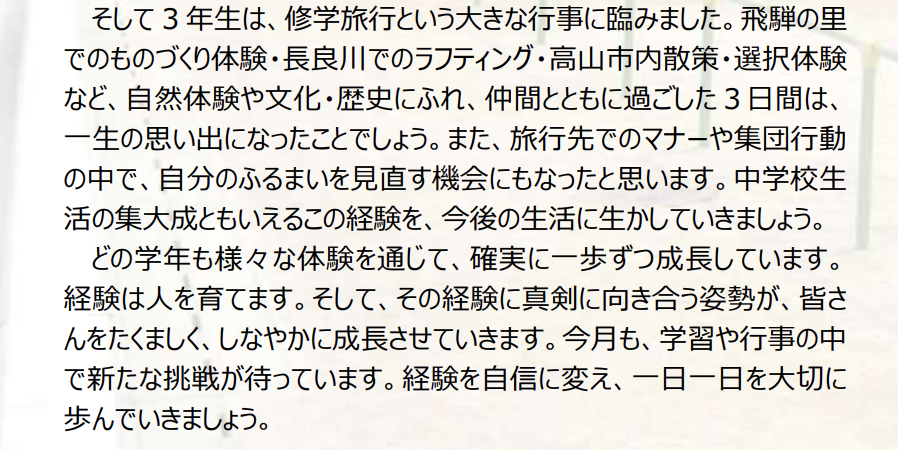 皆さんの出身中学校はどこに行っていましたか?自分の時と比べてみるのも面白いんじゃないでしょうか!