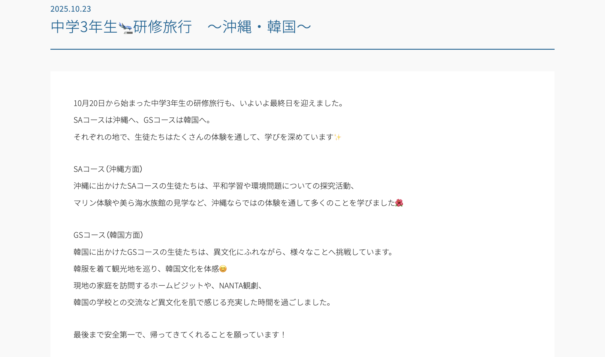香里ヌヴェール学院中学校:沖縄県と韓国