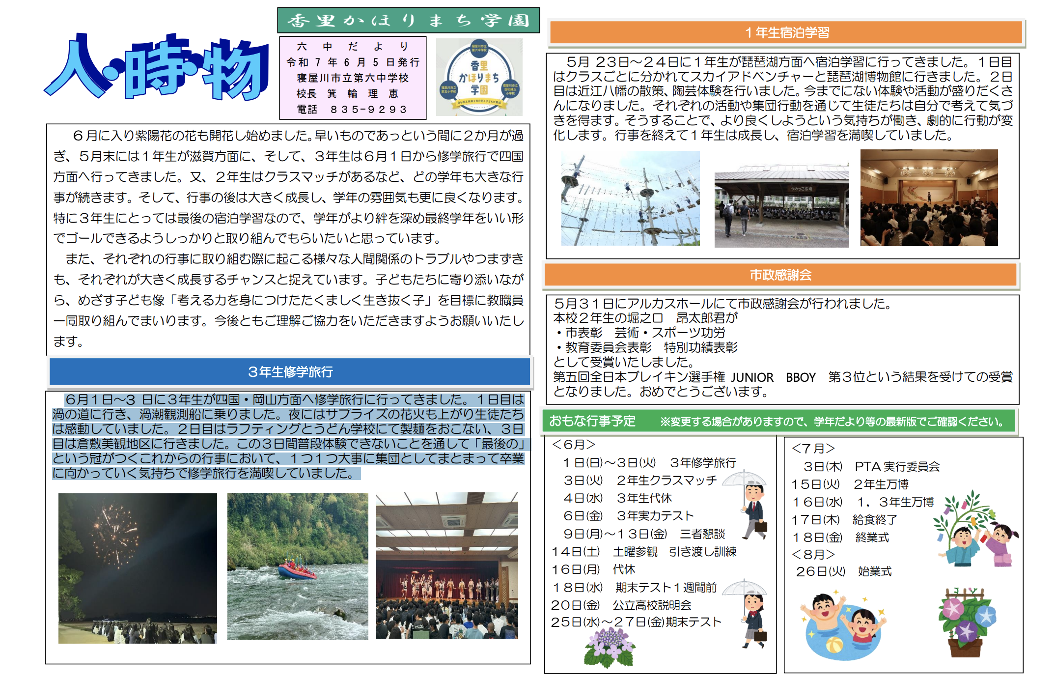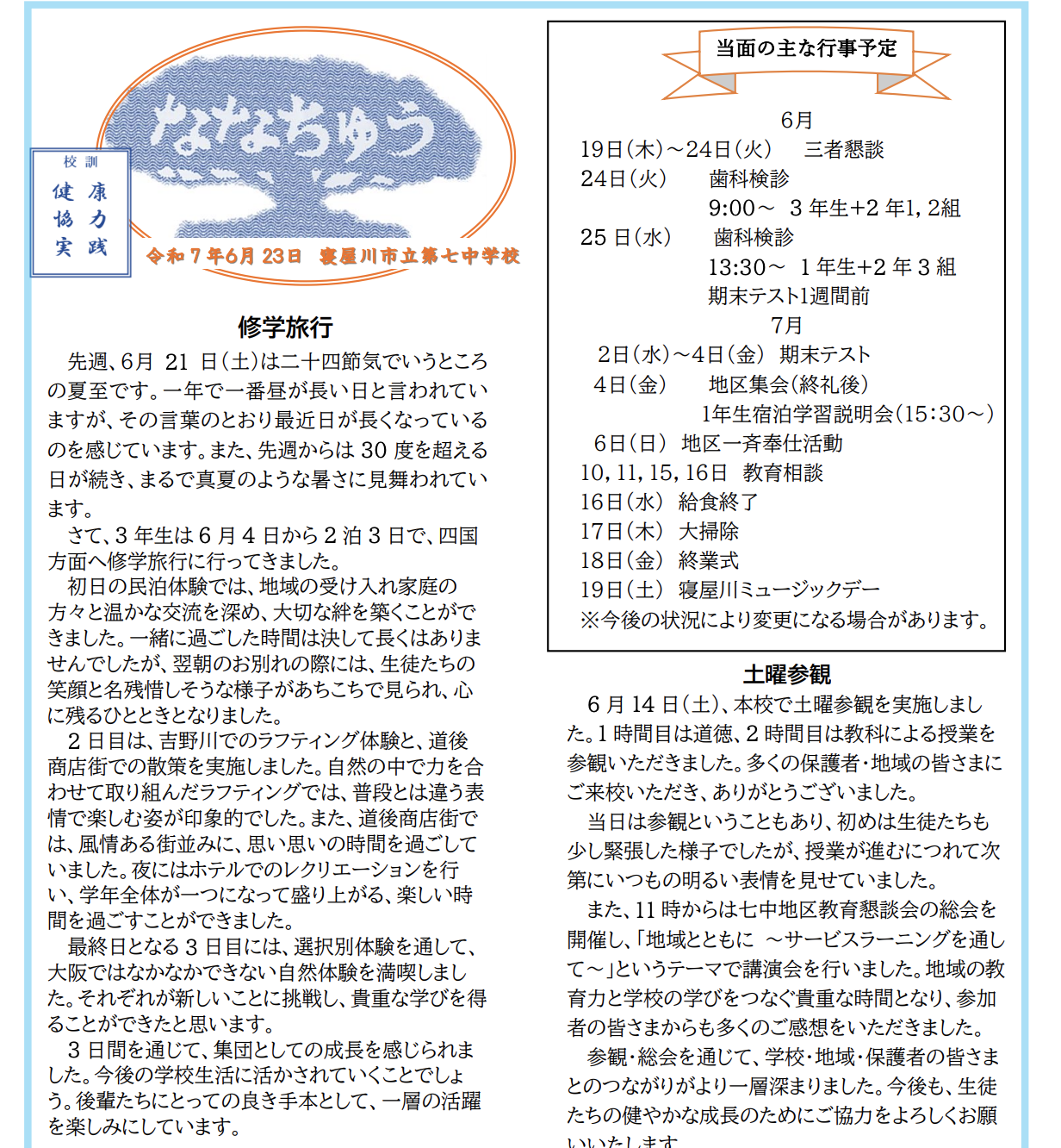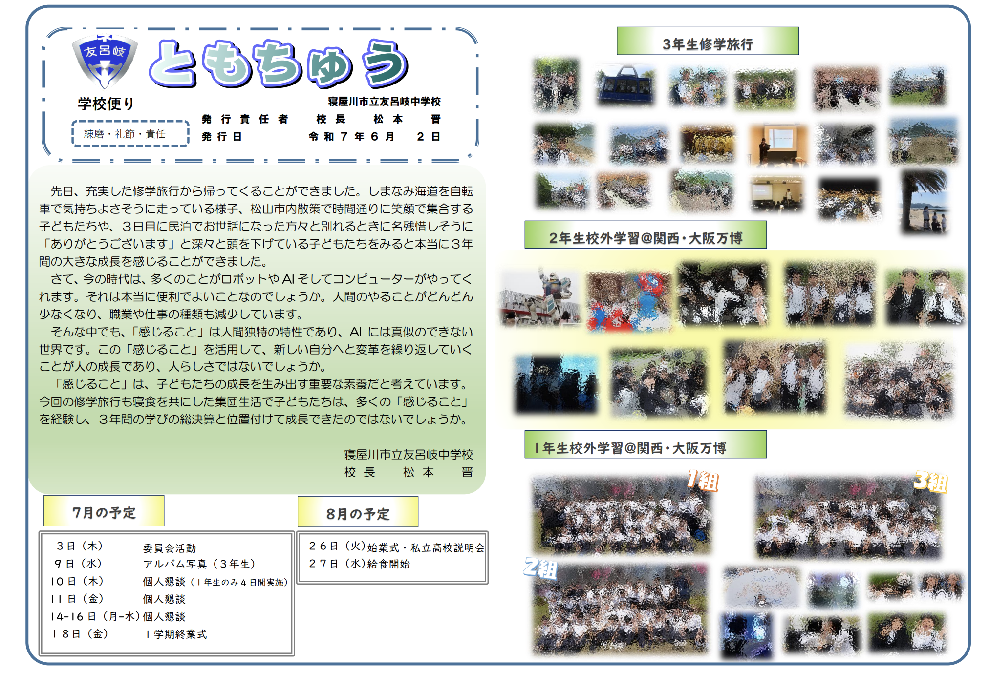 寝屋川市内の中学校の「修学旅行先まとめ2025」です。