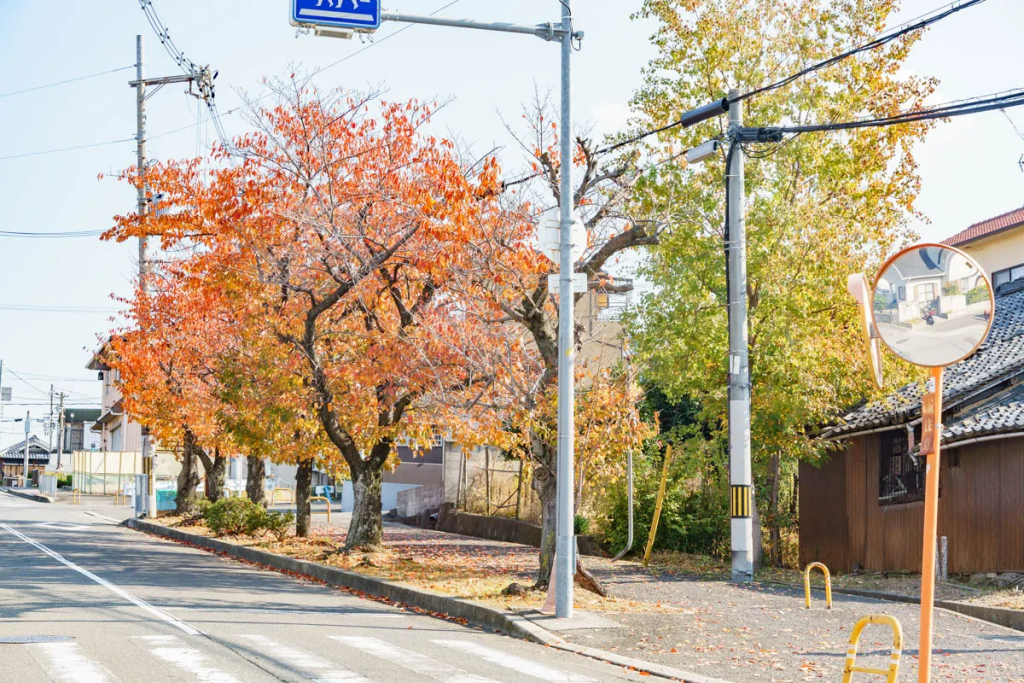 木田小学校前の道路のイチョウは約1.5kmほど続いています。