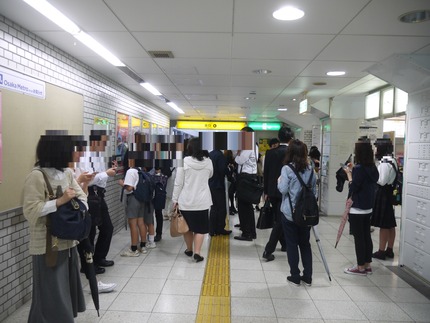 筆者は地下鉄中央線を利用していたのですが、列車の運行が止まって大阪港駅のホームに避難しています。
