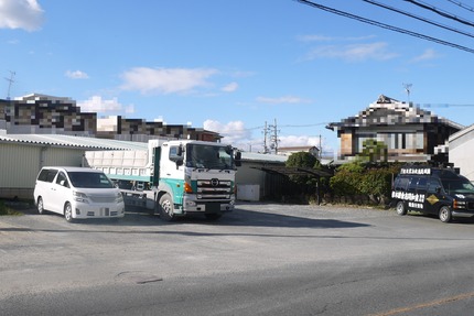 報道によると、この敷地は府有地(手前:府道の拡幅用に取得)と私有地(奥)に分かれていますが、私有地の所有者が府有地も合わせて駐車場として整備し、10年近く賃料を得ているとのことです。