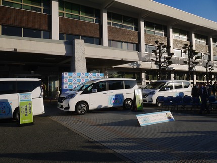このようにして式典が終わると、3台のワゴン車(日産・セレナのe-power)は各地域へと発車していきましたよ。