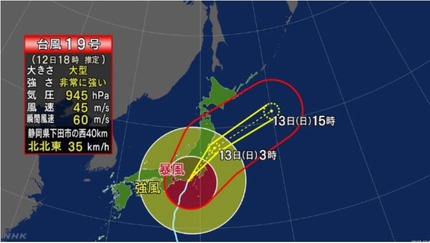 台風19号は非常に強い勢力を保ったまま19時前に静岡県の伊豆半島に上陸し、1都6県で大雨の特別警報(警戒レベル5)が出されるなど厳戒態勢が取られています。