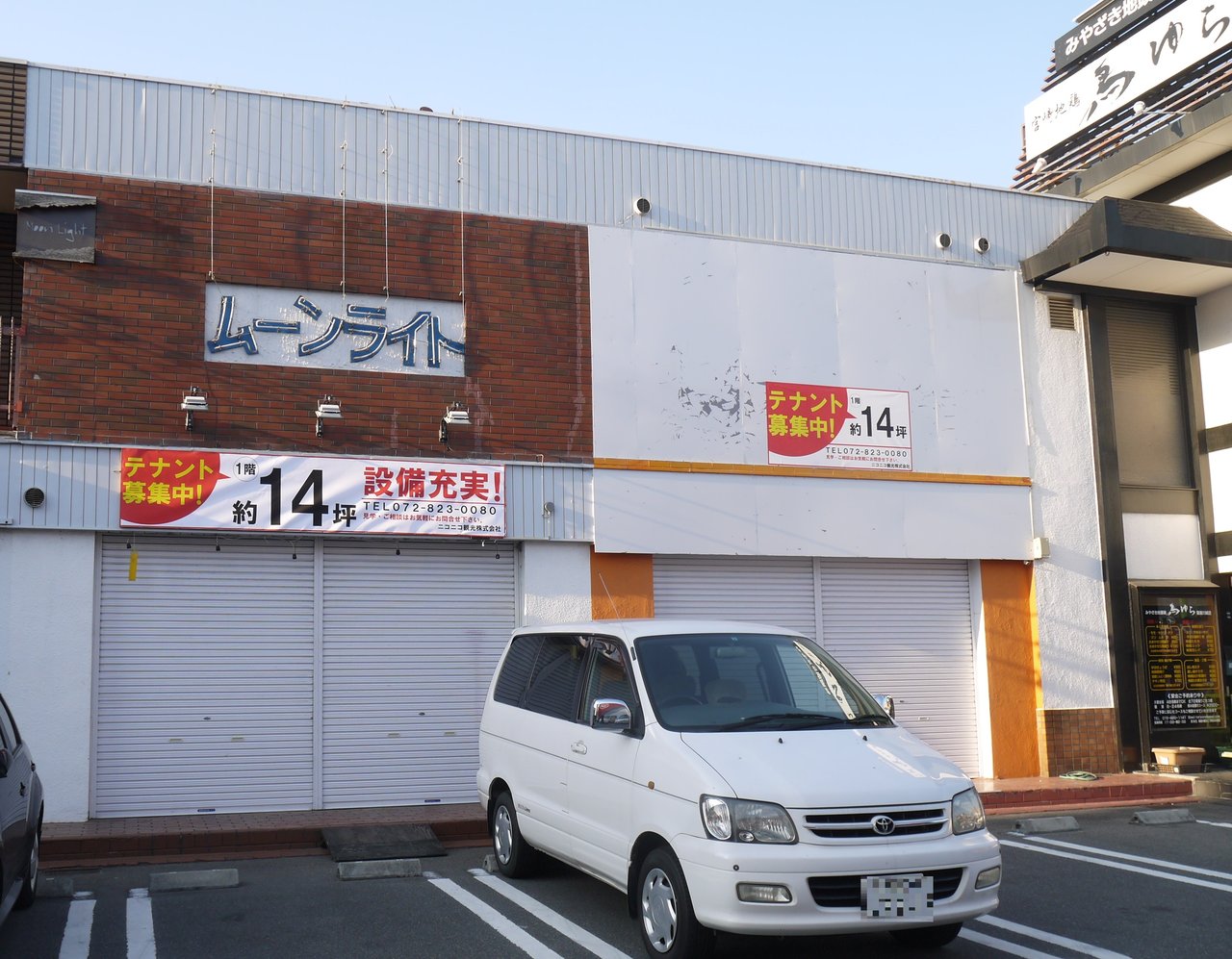 閉店してからまだ1週間ほどですが、現地では看板が外されてテナント募集中の横断幕が登場していました。