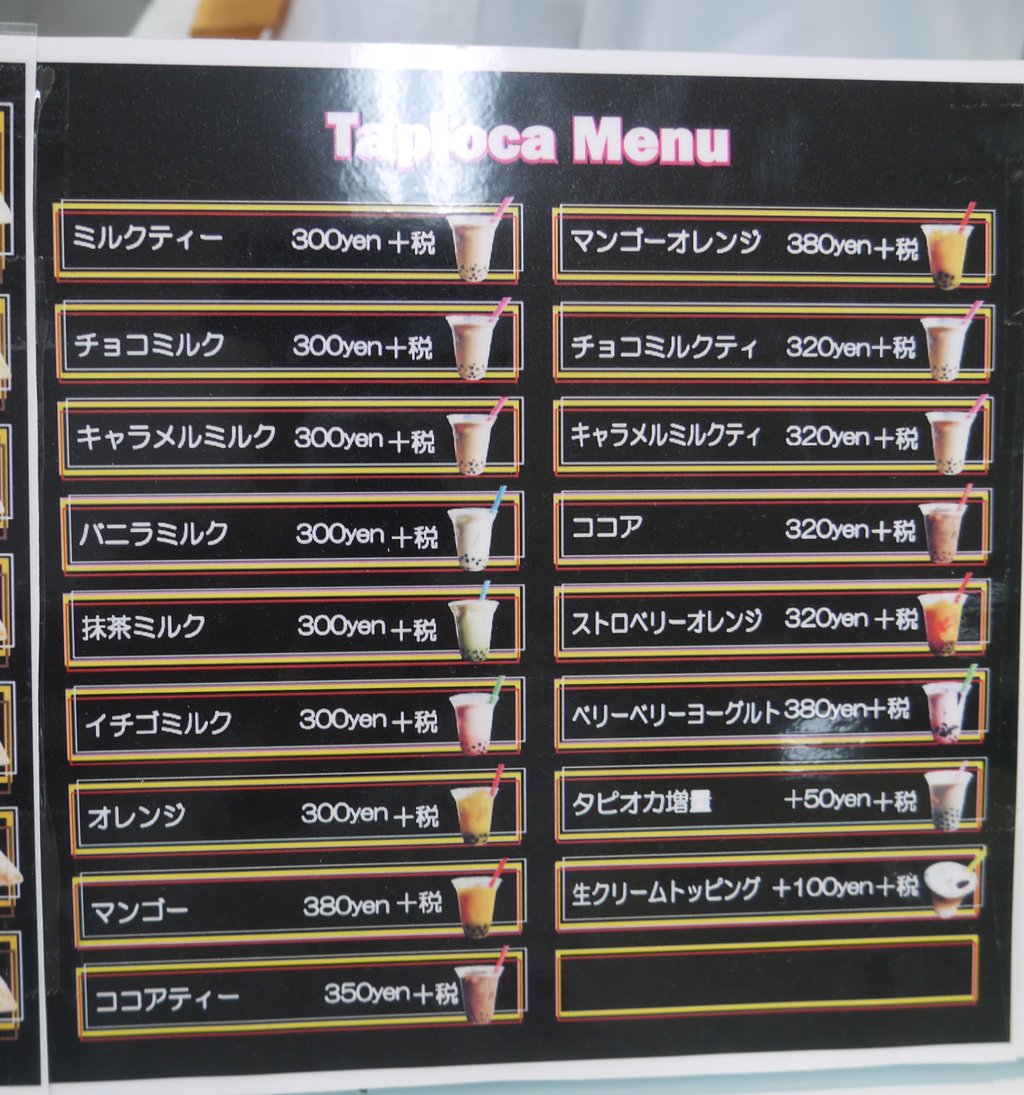 Tapioca Menuというのは、キャッサバの根茎から製造したデンプンの「タピオカ」(こちらのお店は台湾産を使用)が入ったドリンクのことです。