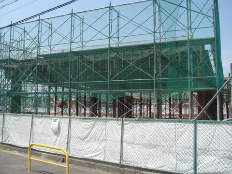 東側の向こうには寝屋川市立和光小学校が見えています。右側の緑の網で囲まれたのが今回建設中の建物です。