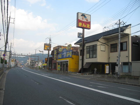 前の道路(国道163号線)を西へ行くと、門真方面へ向かいます。お好み焼き屋の「きん太」があったところですが、看板は既にピソラのものに変更されています。