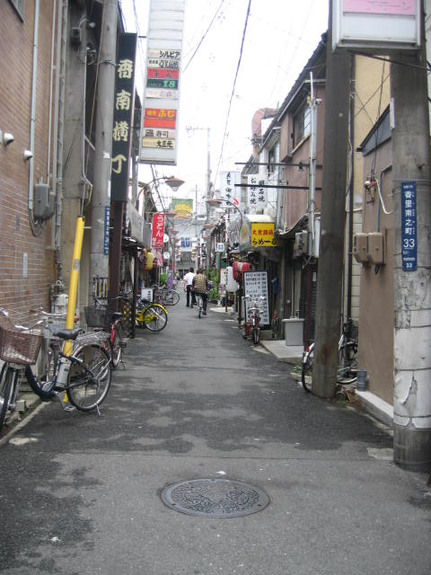 香里ダイエー本通商店街からアクセスする場合、こちらの角を北に曲がります。かすかに開店予定であることを6月10日に記事にしたファミリーマート寝屋川香里南之町店が見えています。