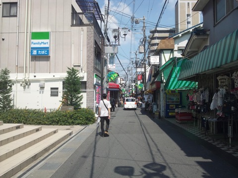 西側を向いて撮影。すぐそこに国道170号線の交差点があり、そのまままっすぐ行くとアルプラザ香里園へ向かいます。店頭に立っておられたファミリーマートの社員さんに遠慮して目立つデジカメではなくスマホ(SH-01D)で撮ったので、手が写ってしまっていますね(笑)すみません。