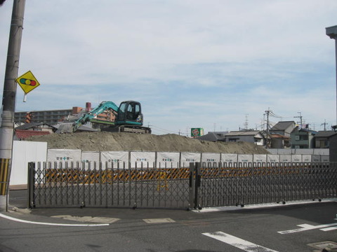 現在造成している段階ですかね。向こう側にライフ寝屋川黒原店の看板が見えています。