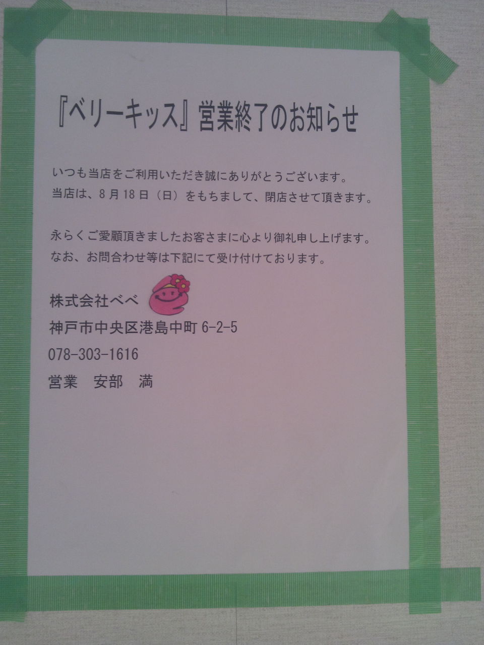イオンモール寝屋川2階の「ベリーキッス」が8月18日の営業をもって閉店しています。