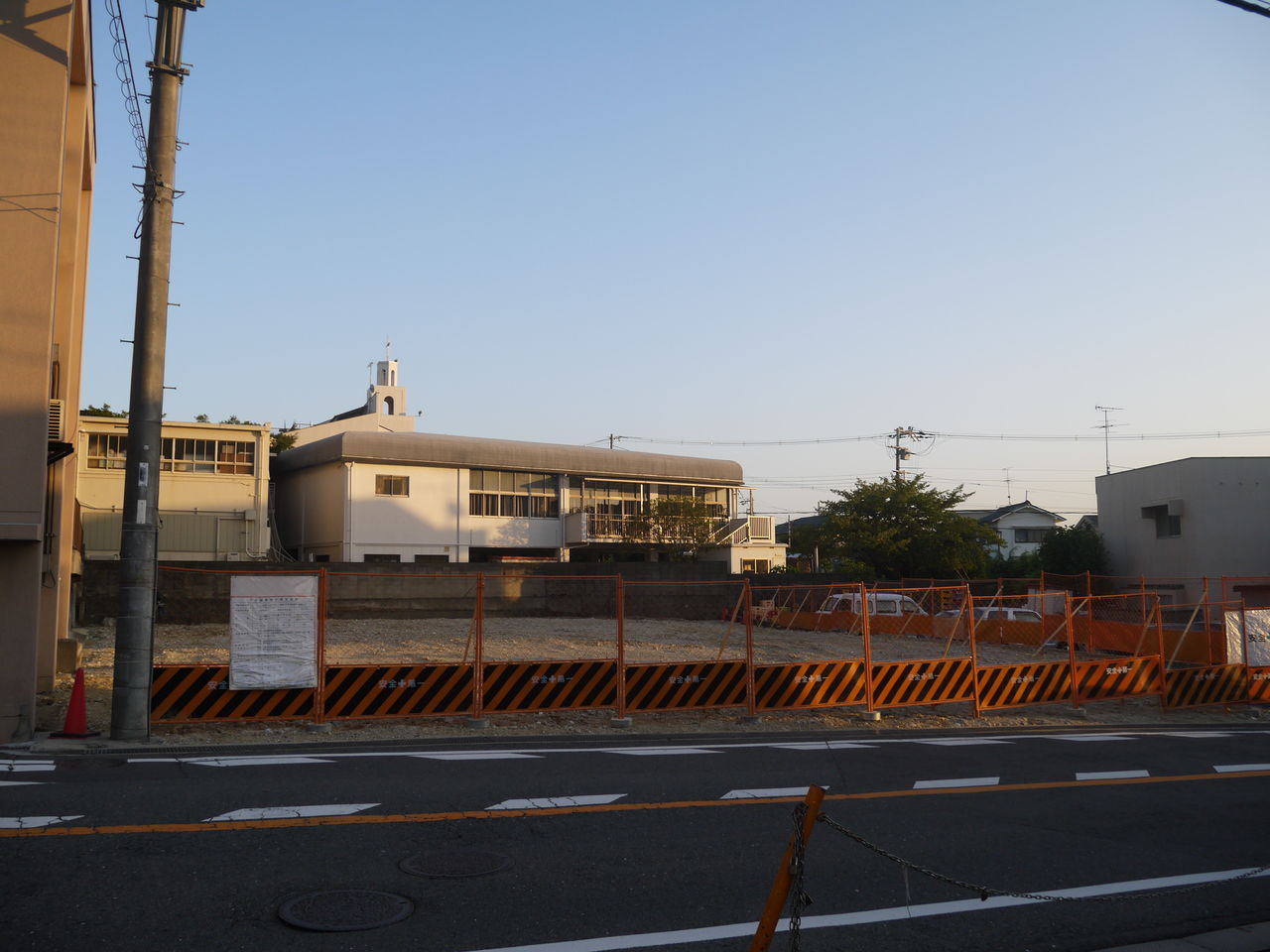 解体された現場を正面から見てやります。以前は見えなかった「カトリック香里教会」が姿を現しています。