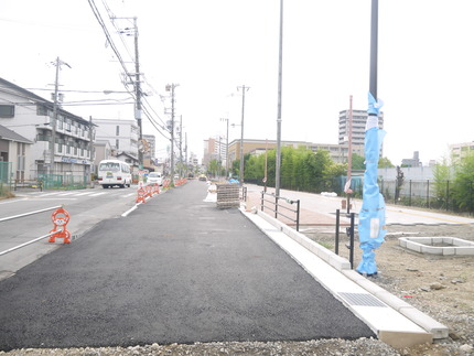 ・寝屋川駅前線の整備状況 2014.5。中央小学校前に歩道のようなものが出現(2014年5月)