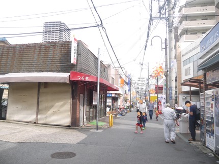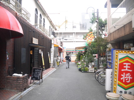 トップワールド香里園店の駐車場から北へ抜けた、京都王将の向かい側です。(つきあたりに見えているのは、香里ダイエー本通商店街。)