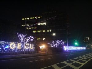 前の道路を西方向へ行くと、サンディや市立総合センターのある池田方面へ向かいます。