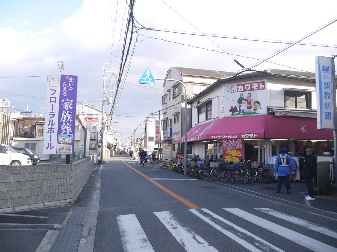 閉店する「ファミリーファッション カワモト」は、寝屋川市駅から西小学校の前を通って仁和寺方面へ向かうと、左側に見えるお店です。