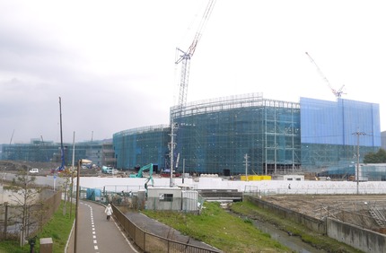 実際にこの場所で「ららぽーと」が開業すれば、巨大ショッピングセンターとなるのは間違いなさそうです。イオンモール大日や建設中のイオンモール四條畷(下の写真)との競争も、激しくなることが予想されますね。