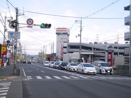 国道163号線は右折レーンの無い交差点が多いなど渋滞が多発する路線です。(あと家電量販店が同じ場所に集中していますね。)