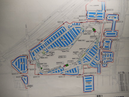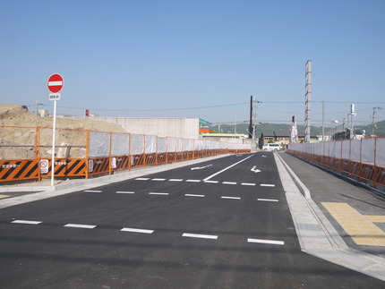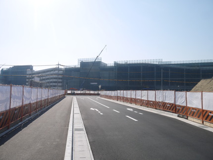 続いて、建物の東側の様子を見ていきます。以下の図にあるような国道170号線へのアプローチ道路が完成し、駐車場の整備も進んでいました。