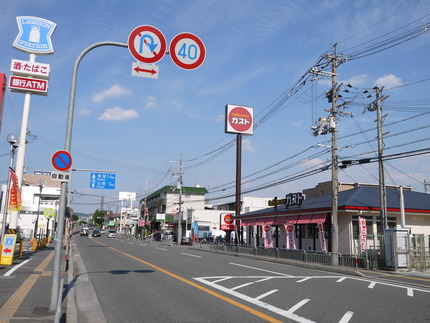 前の道路(府道18号枚方交野寝屋川線)を西方向へ行くと、寝屋川市役所などがある寝屋川市街方面へ向かいます。
