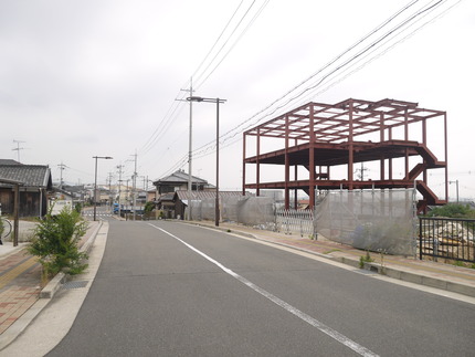 6月に入ってからその様子を見に行くと、建物(3階建て)の鉄骨が組み上がり、道路から見える光景が一変していました。