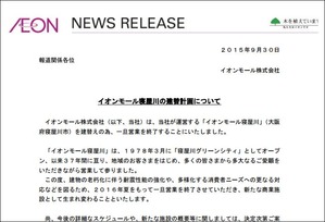 LINK:イオンモール寝屋川の建替計画について(2015年9月30日発表)