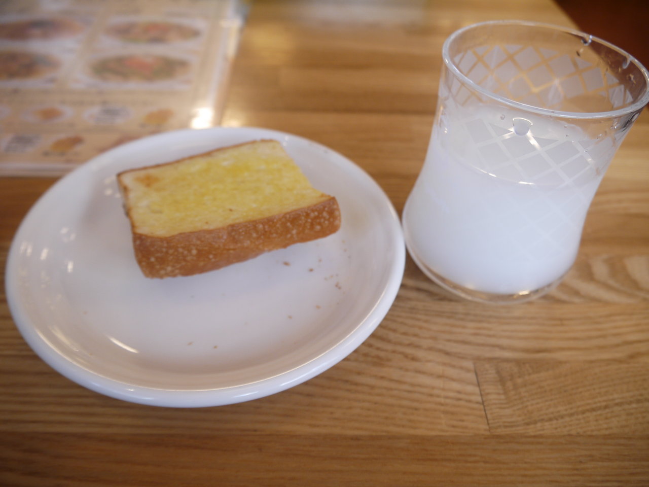 ミニサラダを食べ終えると、トーストが運ばれてきました!こちらもミニサイズで可愛らしいです。(バイキングで取りに行ったカルピスと比べたら、大きさが分かるのではないかと思います。)