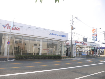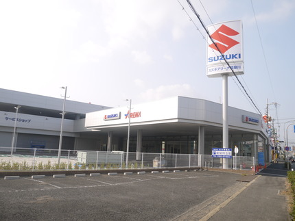完成した建物は、大阪府内に23店舗を展開するスズキ自販近畿(公式ホームページ)の寝屋川営業所。6月にお伝えした時は更地の状態でしたが、4か月の間に工事が進み、看板なども姿を現していました。