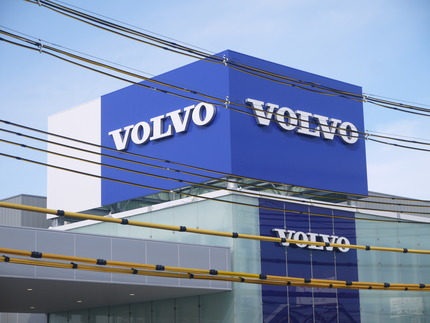 ガラスを多用した建物に青いボルボの看板が姿を現し始めています。