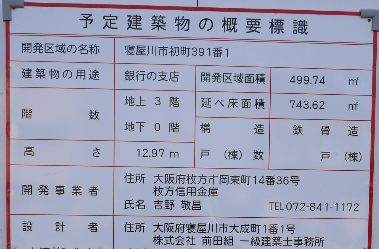 ・初町に枚方信用金庫の建設計画(2015年8月)