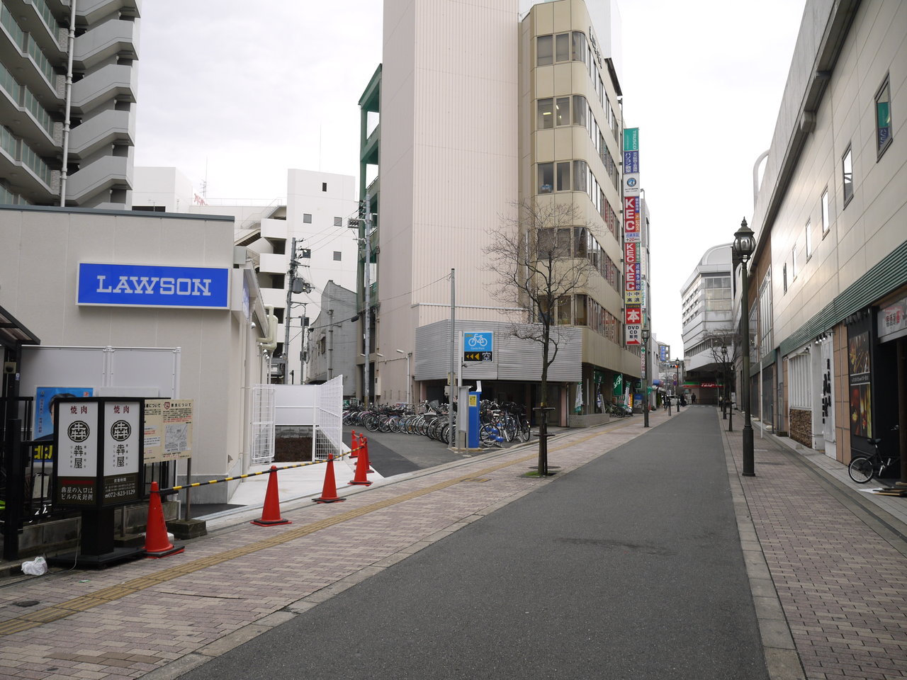 寝屋川市駅の北側で建設中のコンビニ「ローソン寝屋川八坂町店」が、ほぼ完成した状態になっていました。
