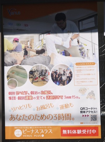ビーナスプラスは、株式会社ビーナス(大阪府堺市、公式ホームページ)が運営する入浴付き半日型リハビリデイ施設。「長時間の滞在よりも短時間の介護を受けたい」という利用者を対象に、3時間程度のリハビリや入浴支援などを行っています。