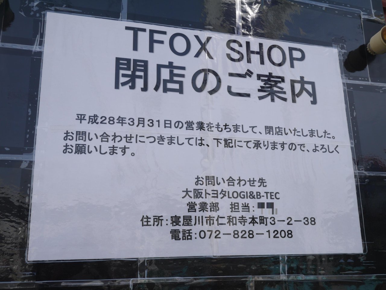 同時に大阪トヨタのカスタマイズ部品を扱う専門店「TFOX SHOP」も閉店したようです。