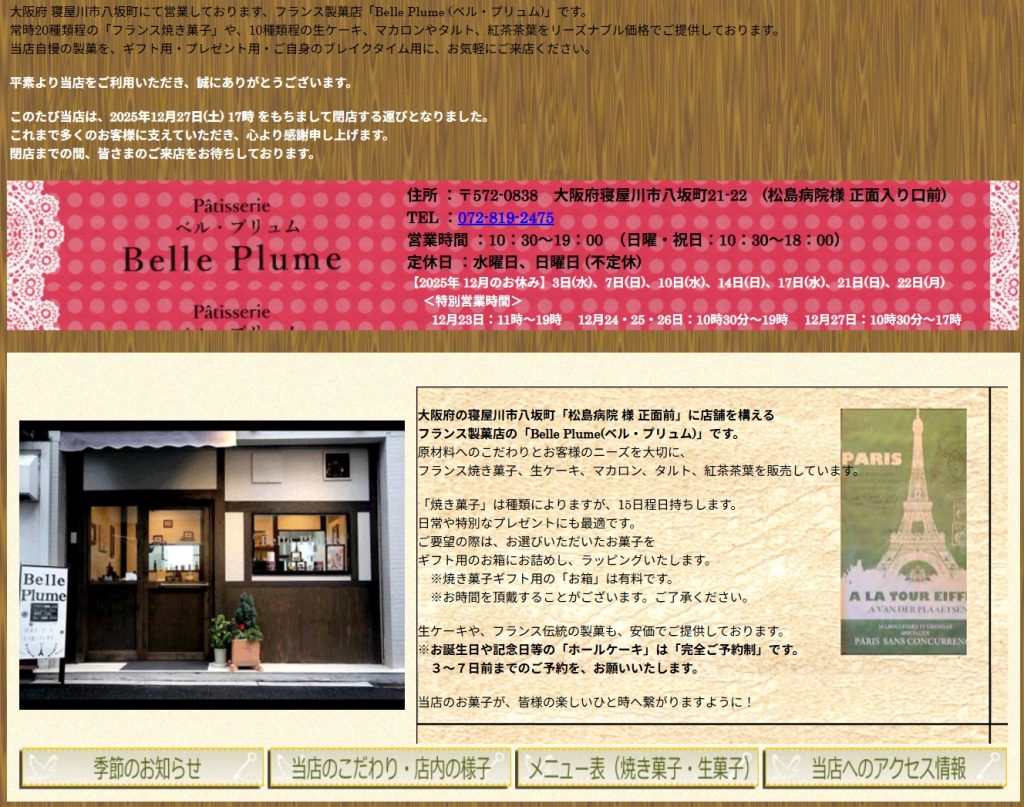 ホームページによると、12月27日に閉店とのこと。