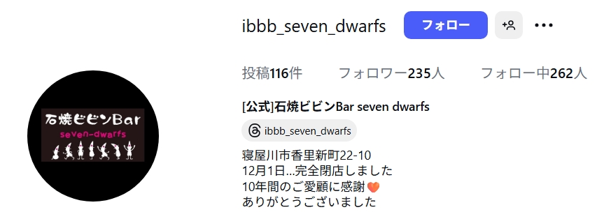 香里新町の「石焼ビビンBar seven-dwarfs」が閉店しています。