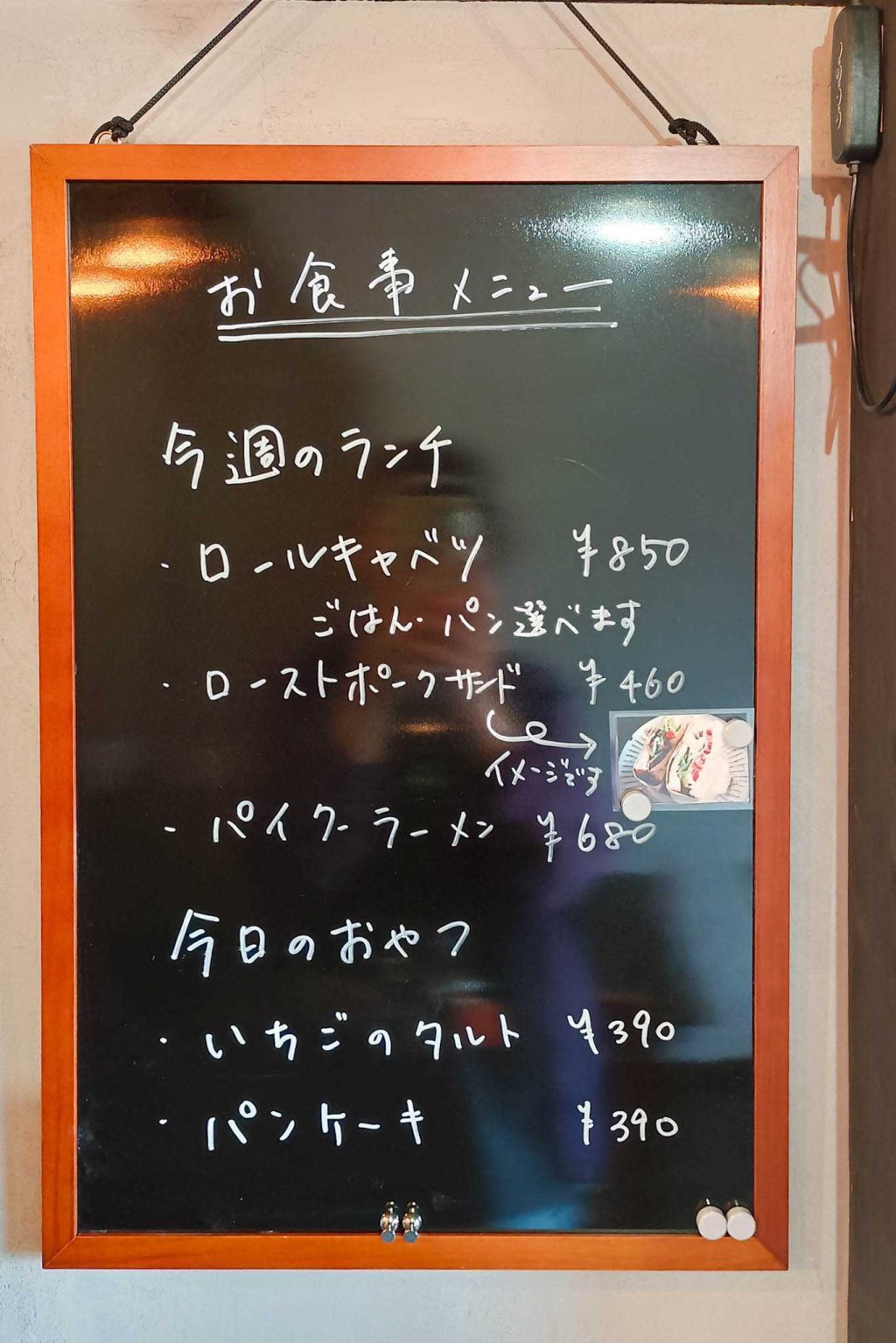 ランチやおやつが楽しめるみたい!ローストポークサンド、美味しそ~!ロールキャベツも食べたい。