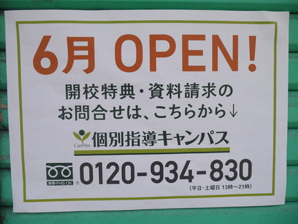 打上宮前町に学習塾の「個別指導キャンパス」ができるみたいです。