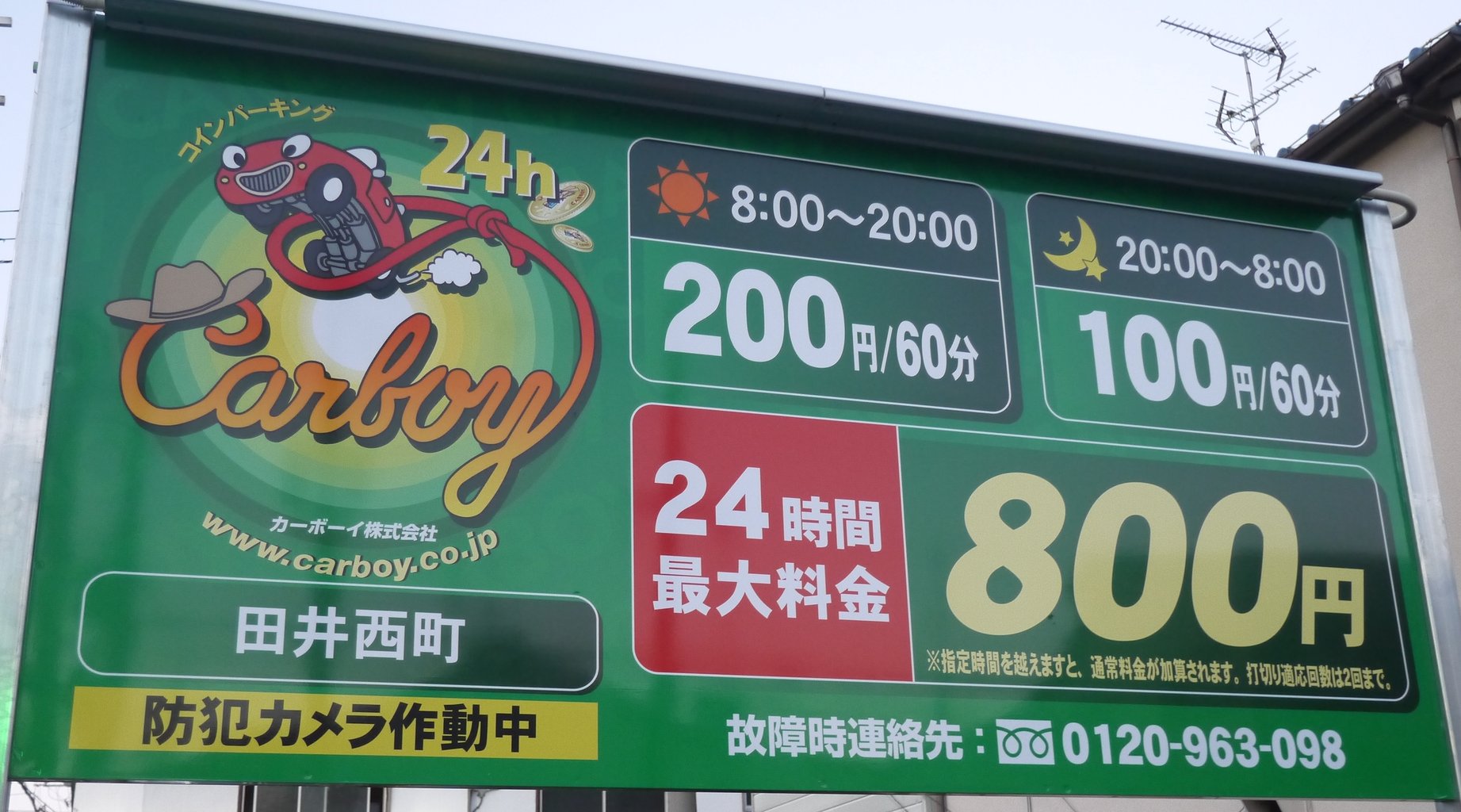気になる駐車料金は、8~20時が60分200円で、20~8時が60分100円。24時間の最大料金は800円です。