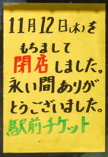 桜木町の府道18号枚方交野寝屋川線沿いにあった金券ショップ「駅前チケット」が閉店しています。