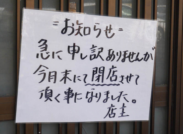 2018年5月に開店したのをお伝えしたお店ですが、店頭に以下のようなお知らせが掲示されているのを見つけた次第です。