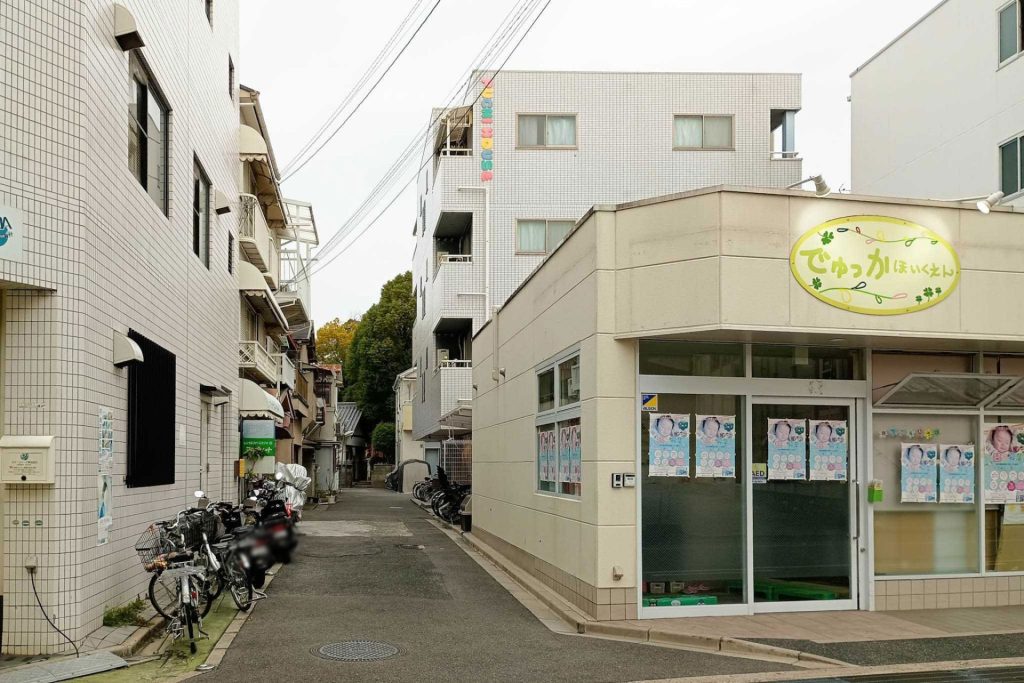藤本病院~寝屋川市駅の道の「でゅっかほいくえん」があるところを入るとお店が。ちなみに八坂神社を通り抜けても到着します。