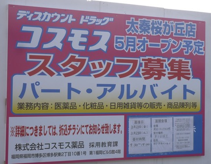 開発事業者のコスモス薬品(本社:福岡県博多区、公式ホームページ)は、「ディスカウントドラッグ コスモス」を西日本地域に964店舗展開する会社です。